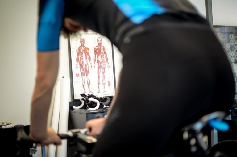 On vérifie la bonne répartition des forces entre la jambe gauche et droite. On s’assure que l’appui du pied est au parfait endroit sur la pédale.